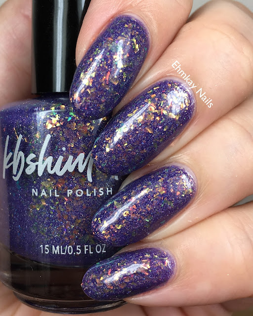 Coulda Had A Bad Witch: 2 coats plus top coat. "Green skin, wiggly nose, or robe and wand, the characteristics of our favorite fictional witches may vary, but the idea of casting spells and brewing potions captivates many. Coulda Had Bad Witch is a nod to the classic Halloween character. A grape purple is loaded with color-shifting flakes that magically shift from hues of green and aqua, to fiery red, gold, and orange." I love how shifty this one is with the magic flakes, which is just so thoughtful for the theme. I always think of purple and green for witches.