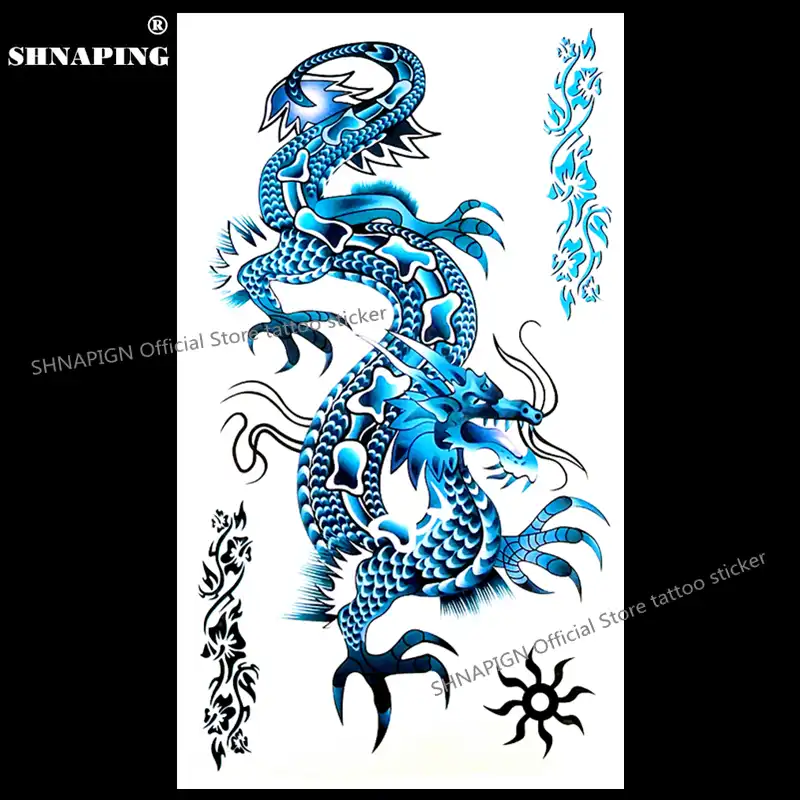 Shnapign Blue Chinese Dragon Temporary Tattoo Body Art Arm Flash Tattoo Stickers 1710cm Waterproof Fake Henna Painless Sticker