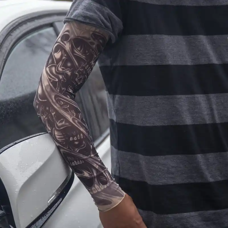 48cm Length Elastic Fake Full Arm Stocking Black Mehndi Henna Tattoo Sleeve Skull Buddha Dragon Pattern High Quality 200models