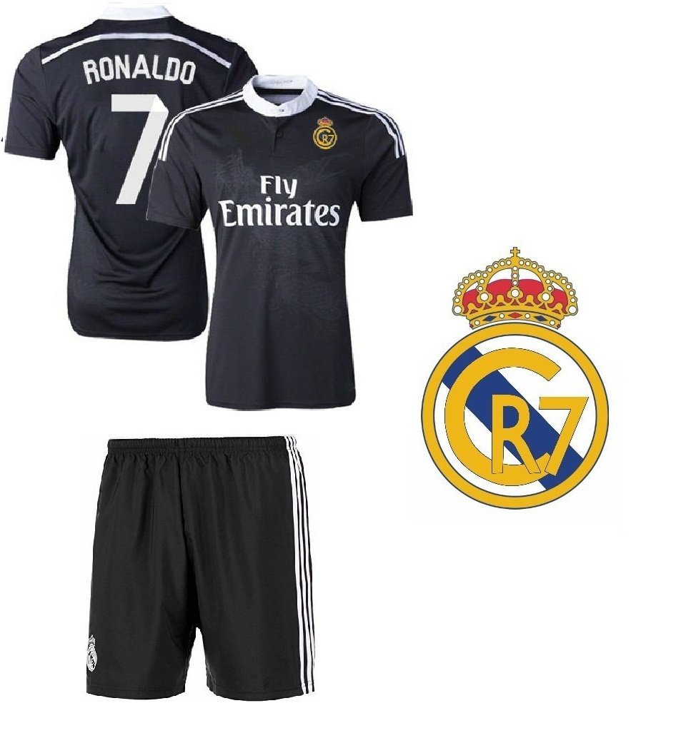Ronaldo 7 Black Real Madrid 7 Cristiano Ronaldo Away Kids Soccer Jersey With Shorts Size Youth Large Fits 9 12 Yo