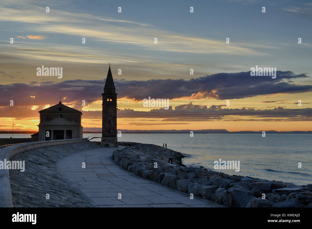 Caorle Sunrise Santuario Della Madonna Dell Angelo Stock