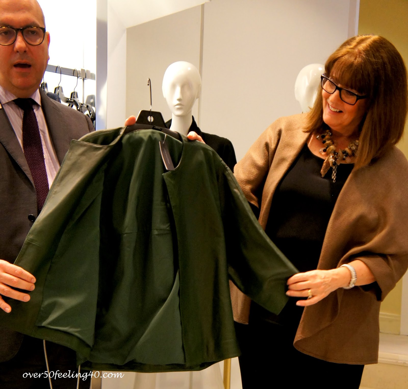 We discussed the importance of women of certain age seizing the courage to try on leggings (even leather ones), great fitting biker jackets, and wearing long, light weight coats with dresses or slim legged pants.