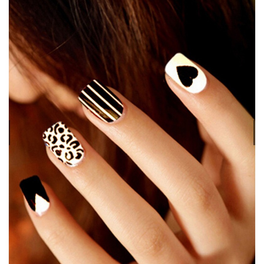 Nail Art 24 Pcs Kuku Palsu Motif Black White