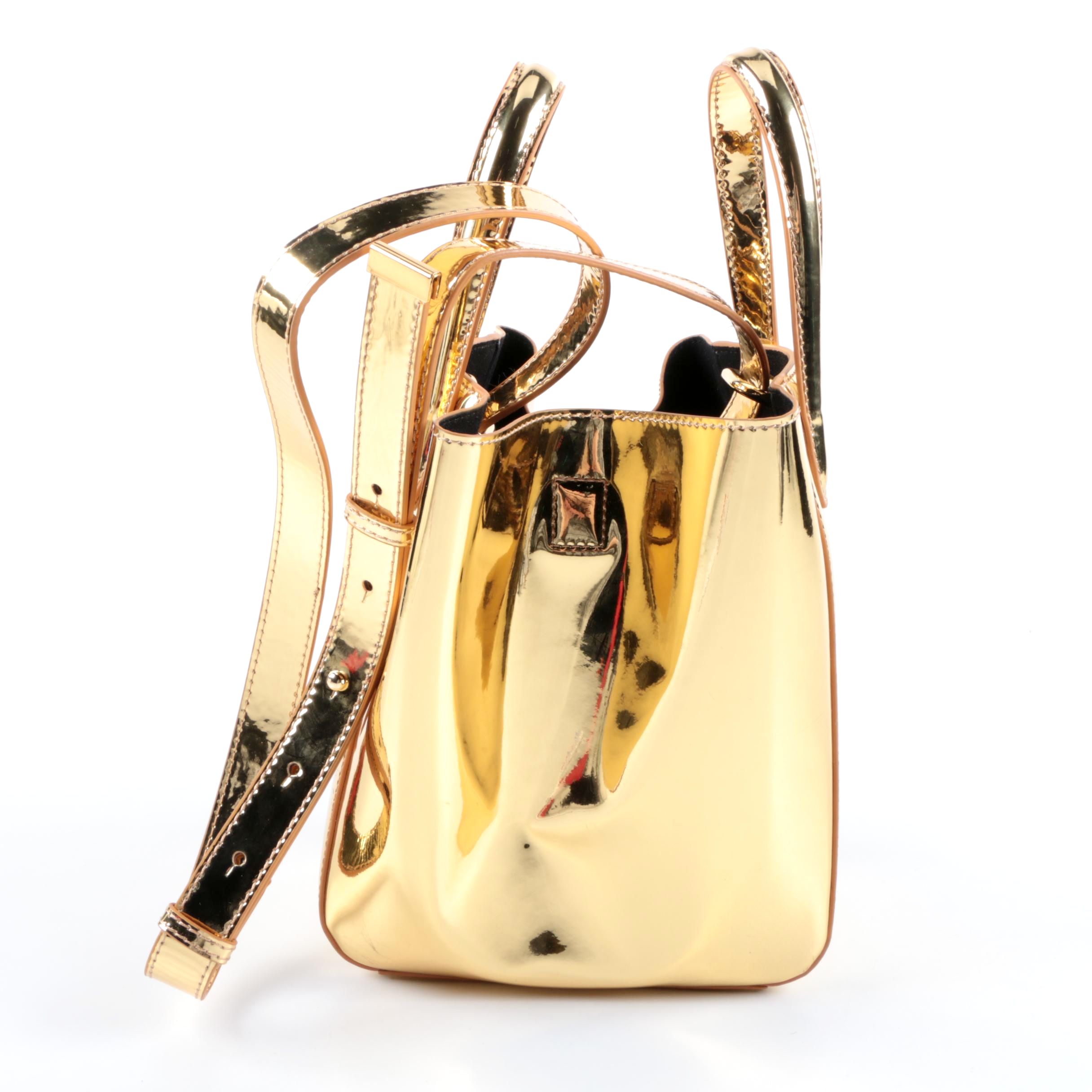 X Nihilo Eight Mini Gold Tone Mirror Vegan Leather Tote Ebth